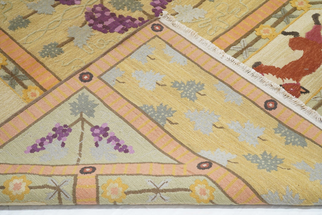 A technique rather than a specific type, in which warps are wrapped by colored wefts to create a pattern. Turkish, Persian and other types. Produces a flat surface, pileless rug which may be turned over for extended use. Lends itself to geometric patterns. Also used on bag faces and as a partial design element on pile rugs.