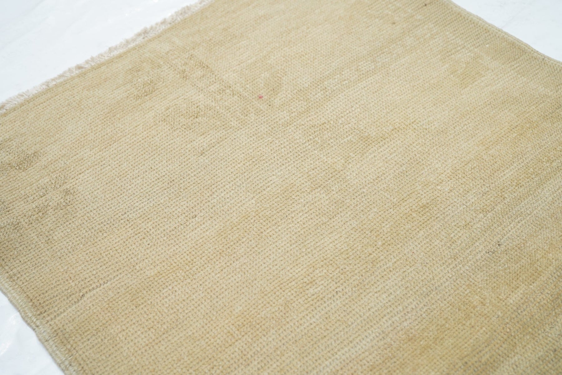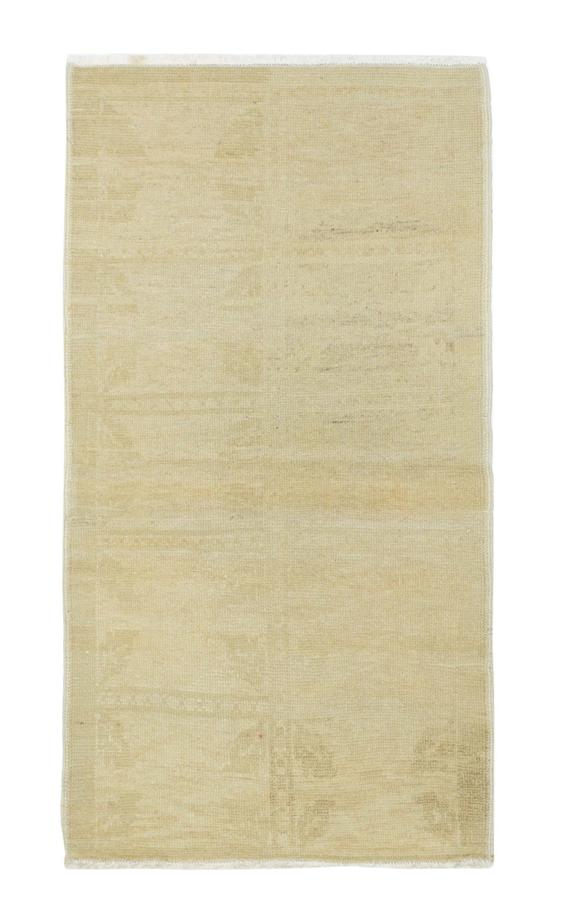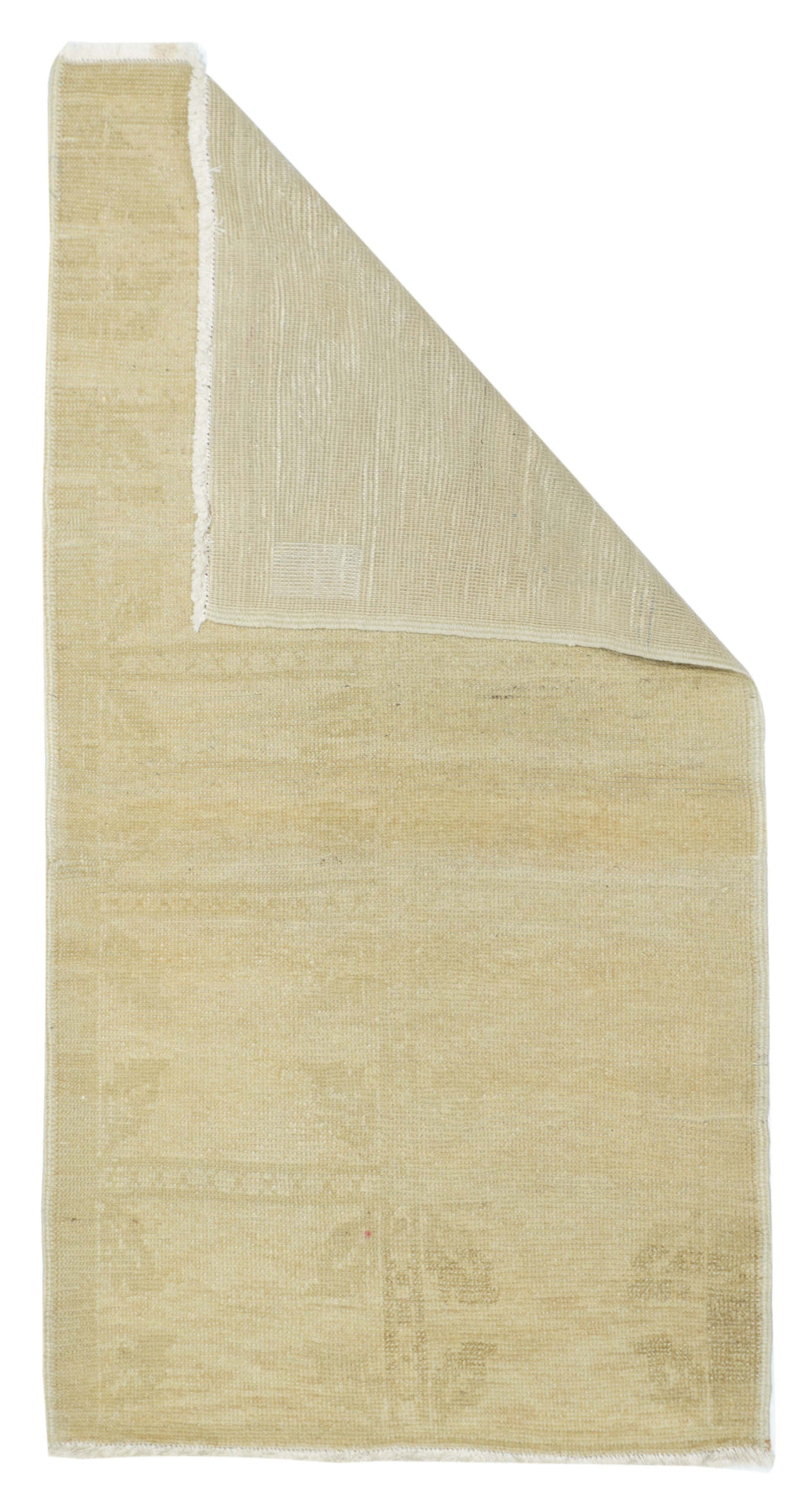 This cotton foundation, medium weave Anatolian scatter presents an almost monochrome straw-beige tonality with just the slightest hint of a shadowy pattern. Uniform light wear. Good condition and obviously versatile.