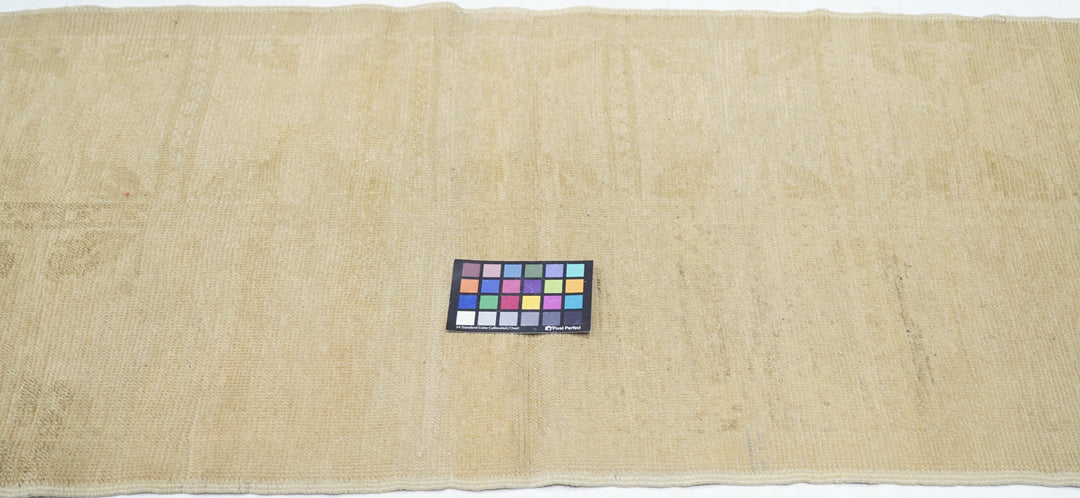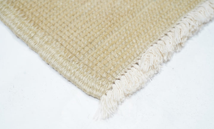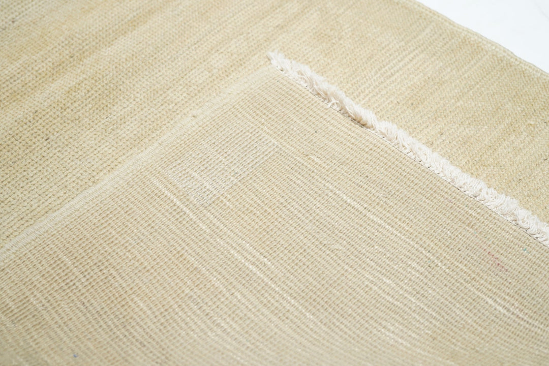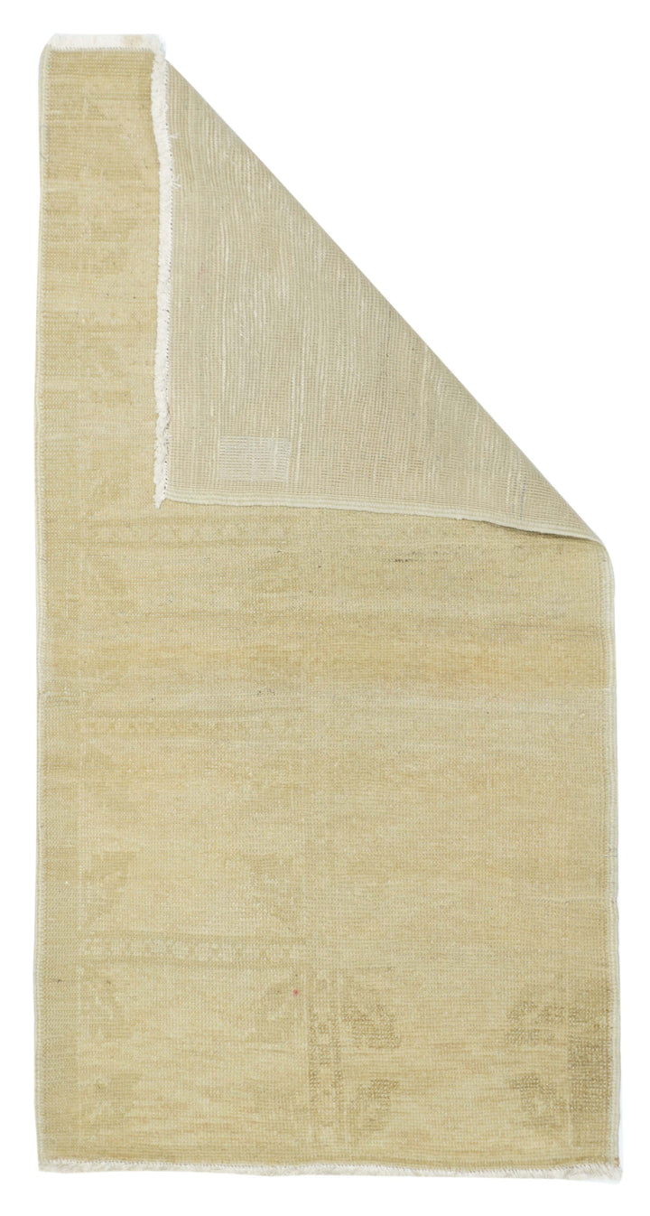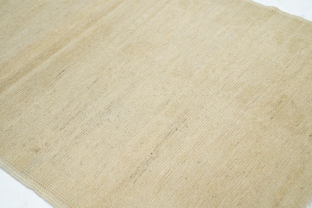This cotton foundation, medium weave Anatolian scatter presents an almost monochrome straw-beige tonality with just the slightest hint of a shadowy pattern. Uniform light wear. Good condition and obviously versatile.