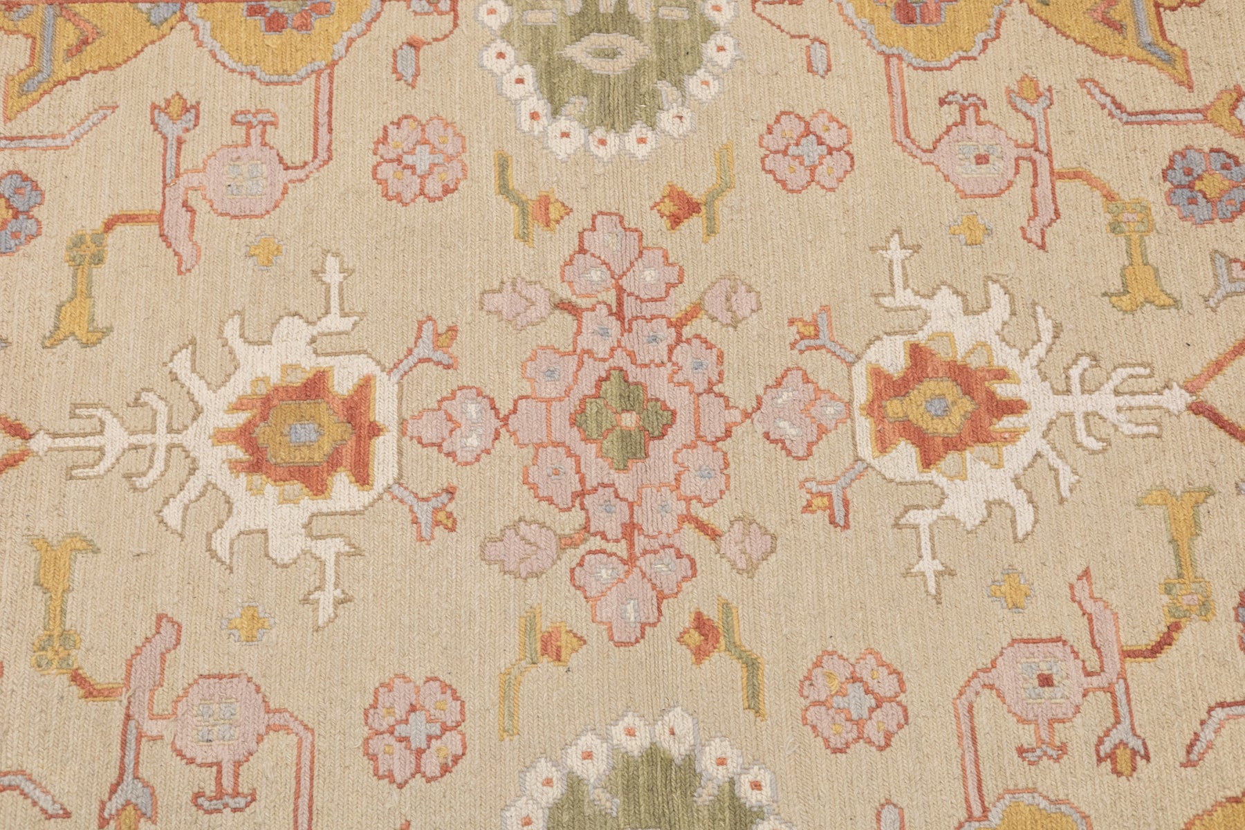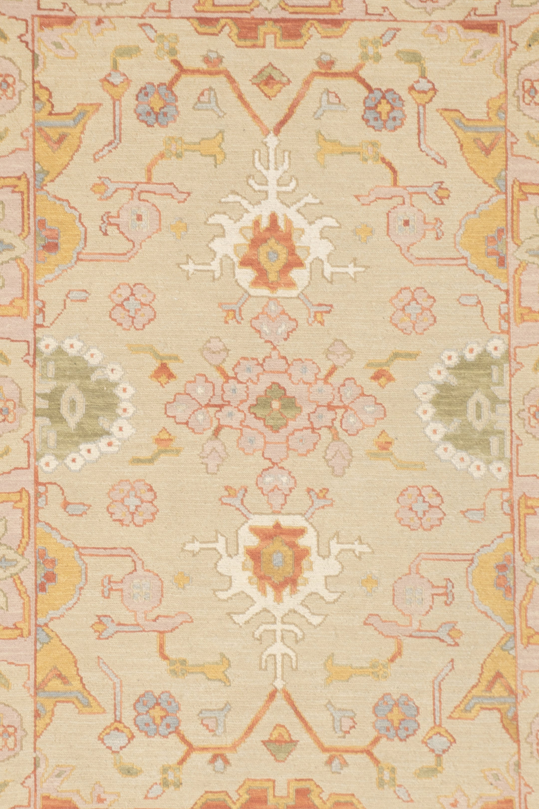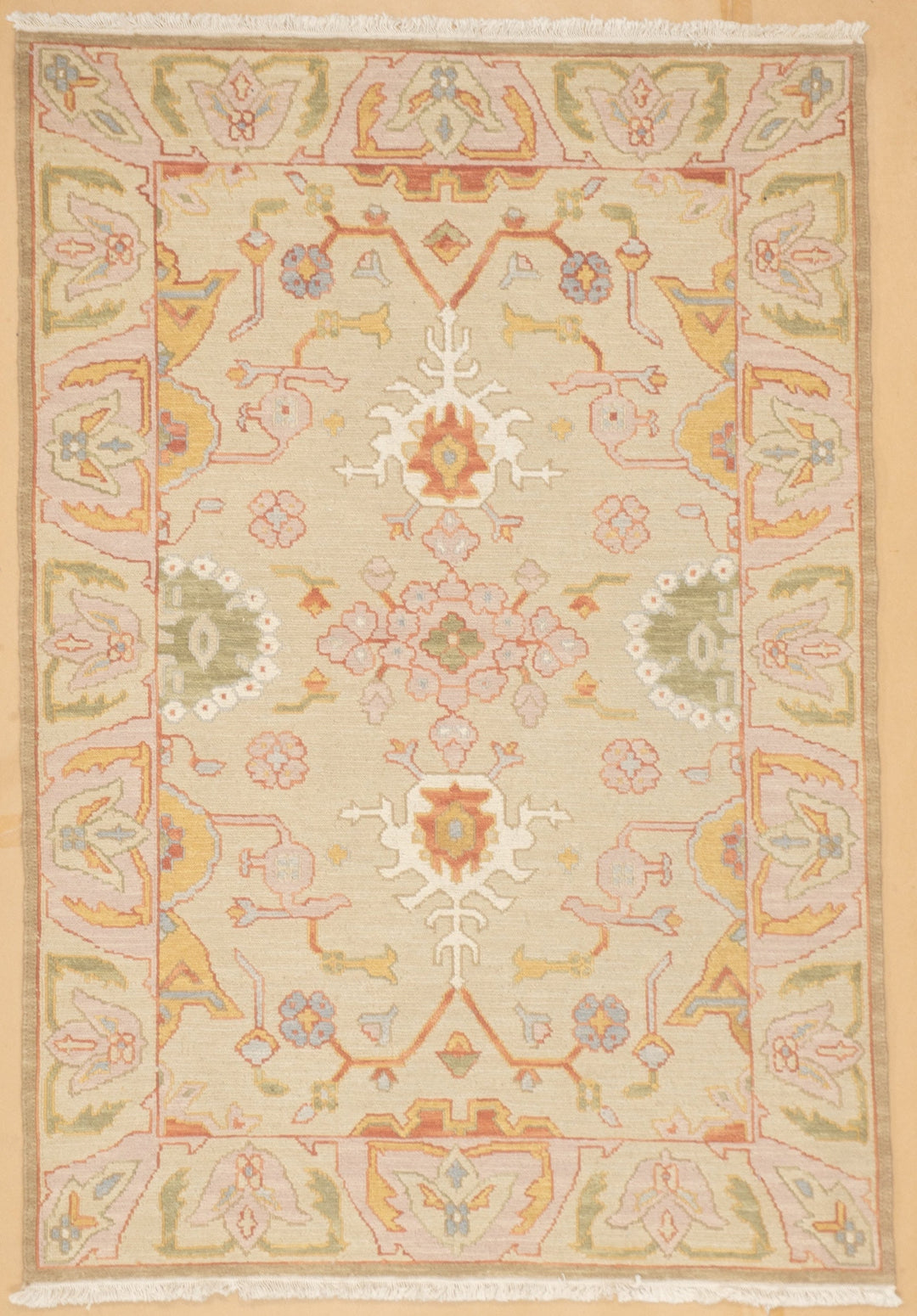 Town in Western Anatolia, weaving mostly room sizes, in coarse to moderate weave, high pile. Antiques are all wool, changing to cotton foundations in the 1920’s. Geometric or Persian-derived patterns, soft or strong palettes; allover or medallion. Informal execution. Carpets change with interior design fashions. Mostly carpets, some very large, also a few runners and scatters. No prayer rugs.