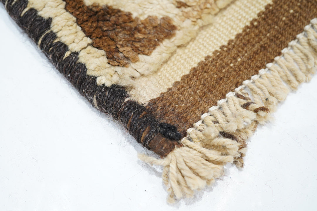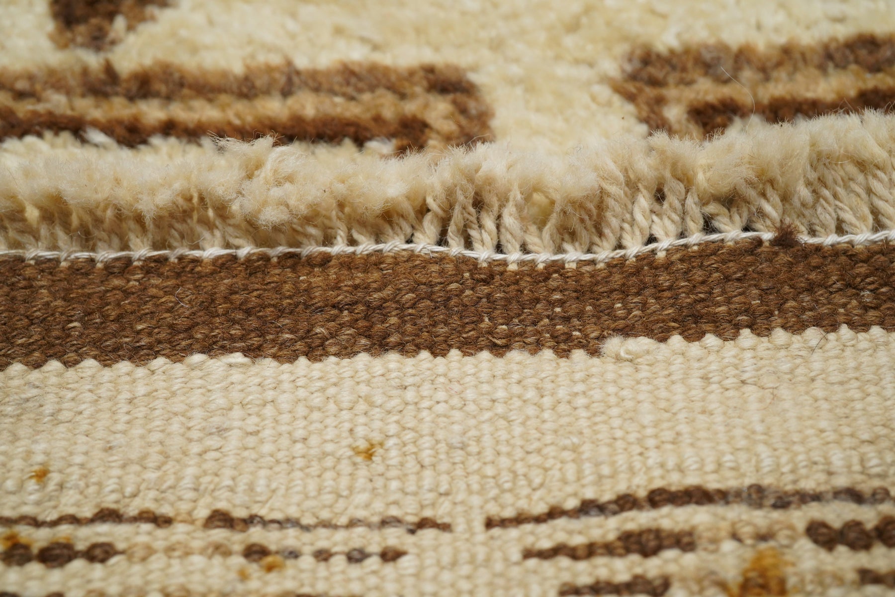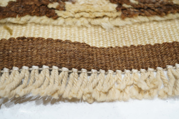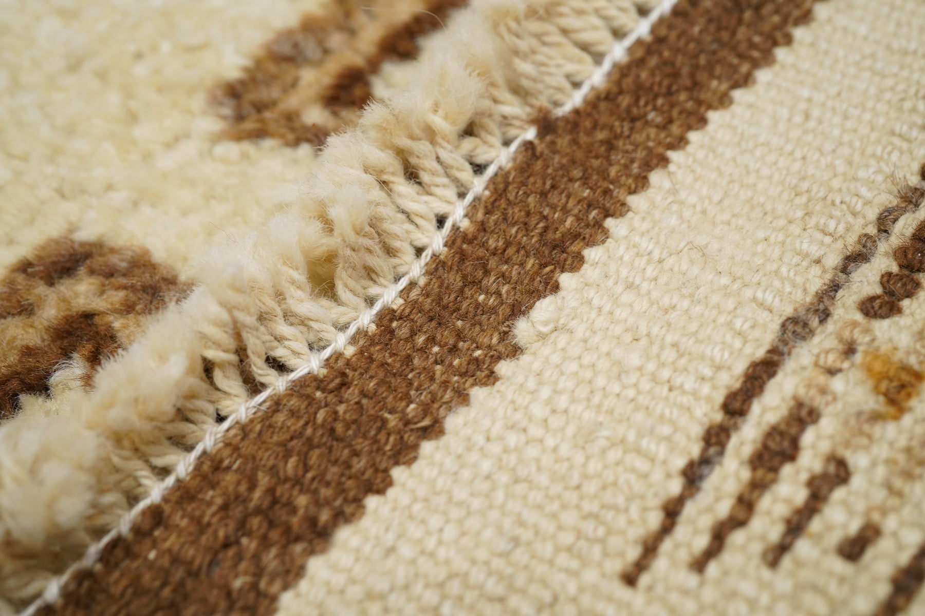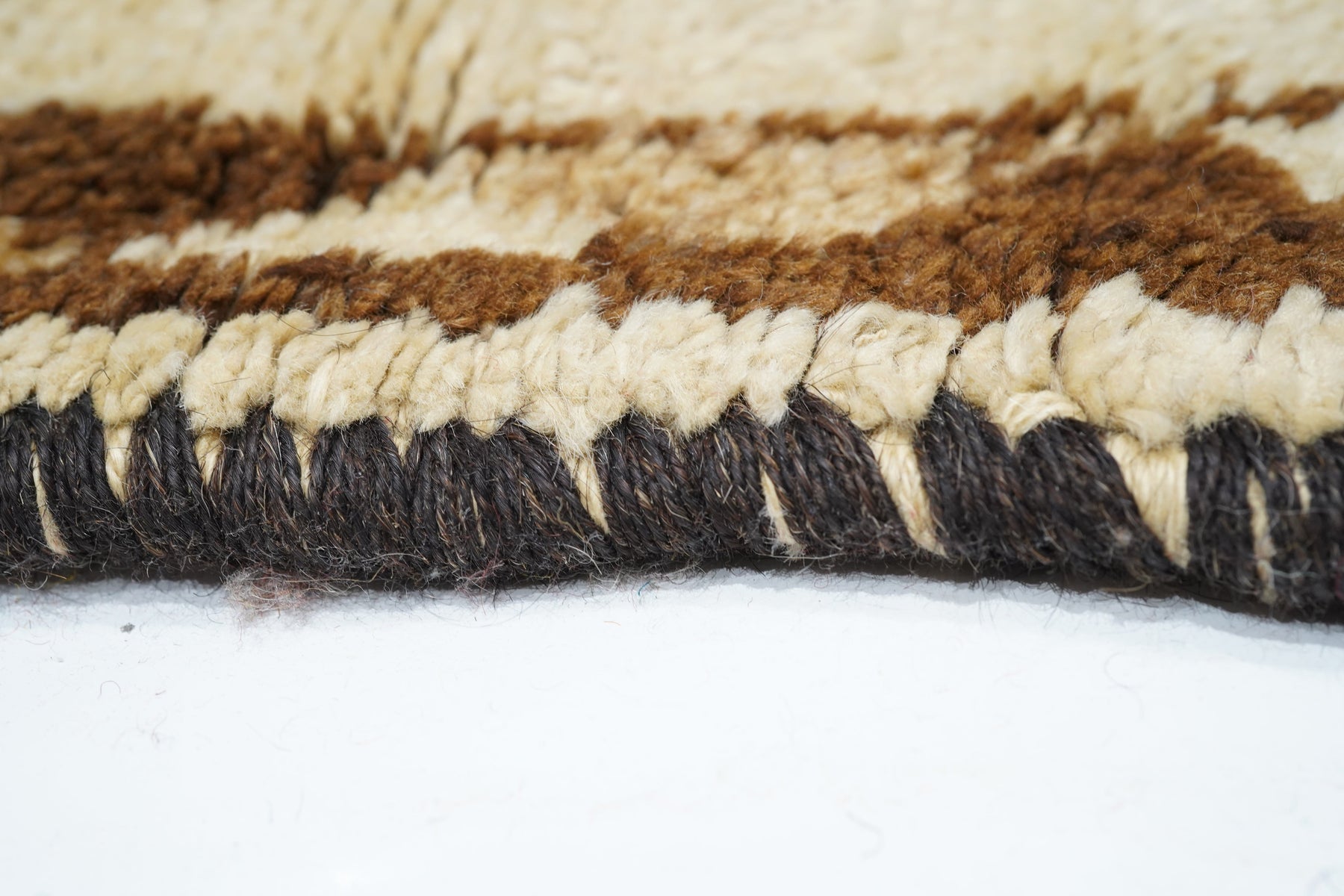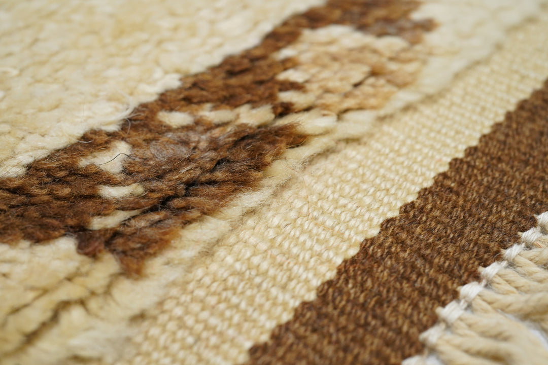 In the blue-and-white style with a round, densely fretted medallion incorporating four dragon heads, and numerous secondary paeony and other seasonal floral sprays. Openwork floral arabesque corners. Ecru main border of lotuses and wiry arabesque segments, Solid dark blue outer surround and inner pearled dark blue frame. Medium weave and cotton. Good condition.