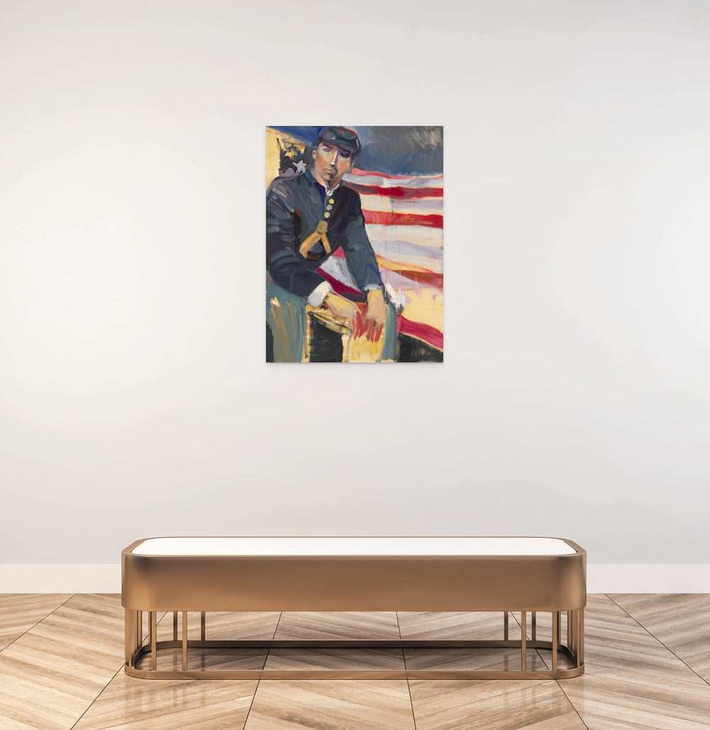 Civil War Soldier Model at Yellow Barn Studio P27. Oil on canvas. 40' x 30' {101 x 76 cm).