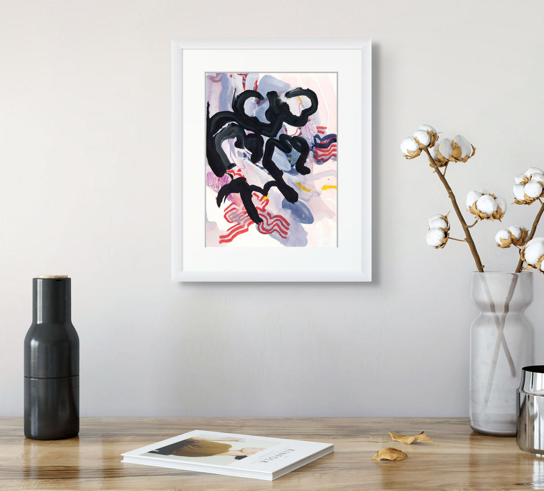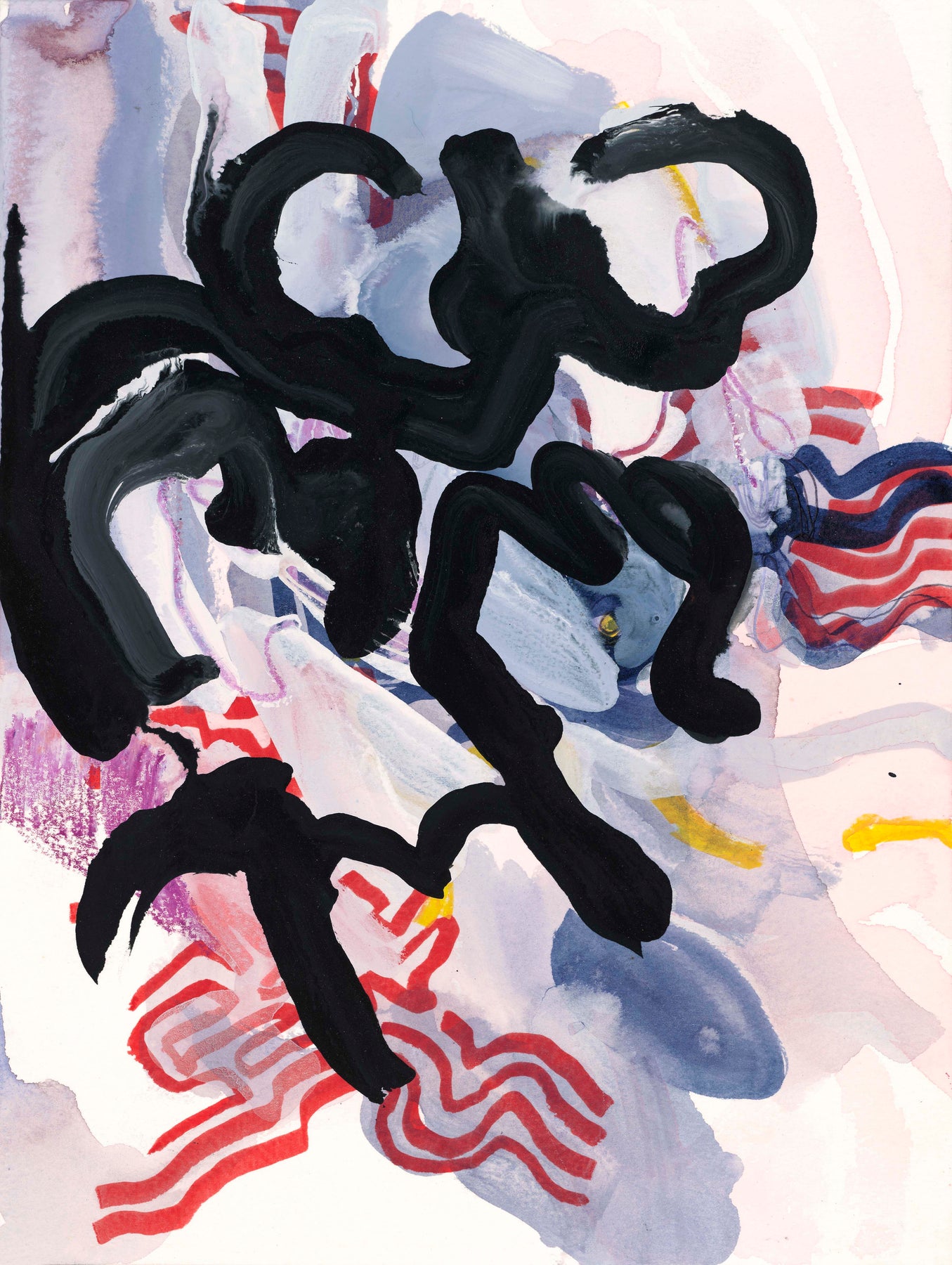 Abstract with Black and Red Lines. Watercolor, ink, and pencil on heavyweight, acid-free, artist paper. 9' x 12' (30.5 x 23 cm)