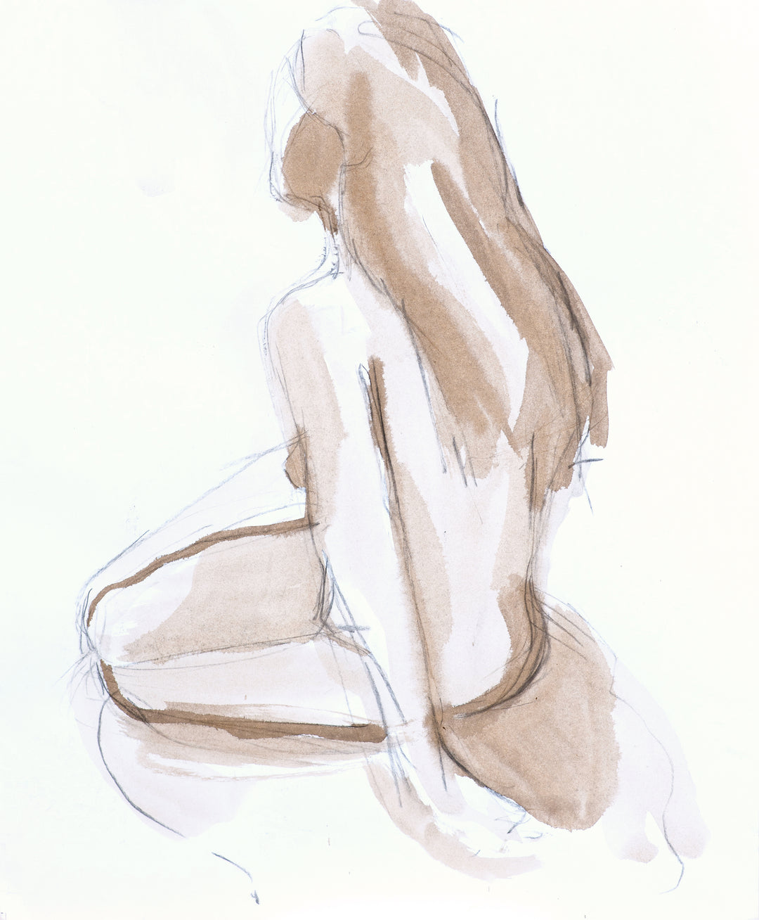 Girl with Long Hair. Pencil, watercolor on paper. 14' x 17' (35.5 x 43 cm).