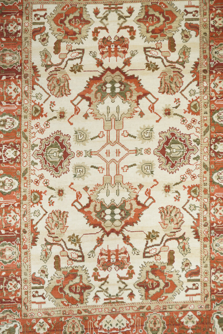 Town in Western Anatolia, weaving mostly room sizes, in coarse to moderate weave, high pile. Antiques are all wool, changing to cotton foundations in the 1920’s. Geometric or Persian-derived patterns, soft or strong palettes; allover or medallion. Informal execution. Carpets change with interior design fashions. Mostly carpets, some very large, also a few runners and scatters. No prayer rugs. Moderate to expensive.