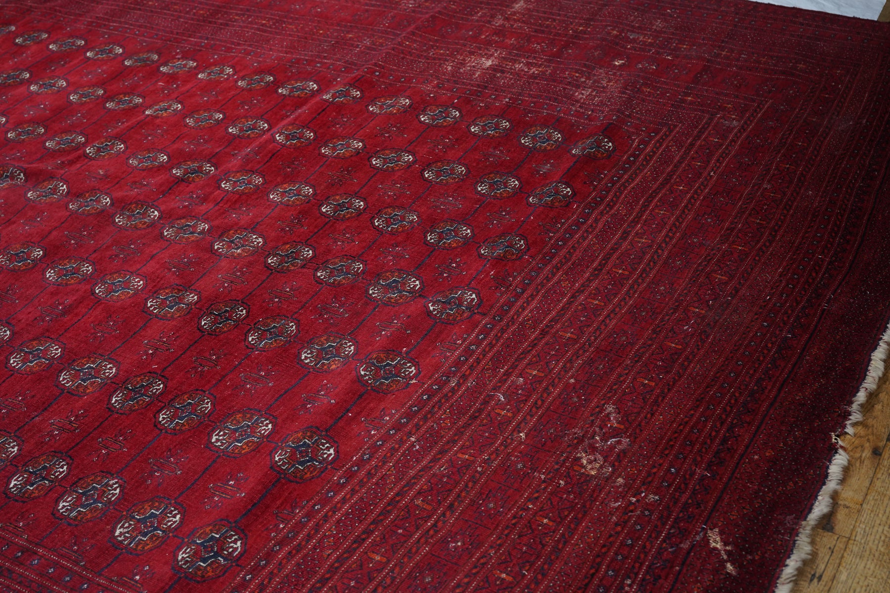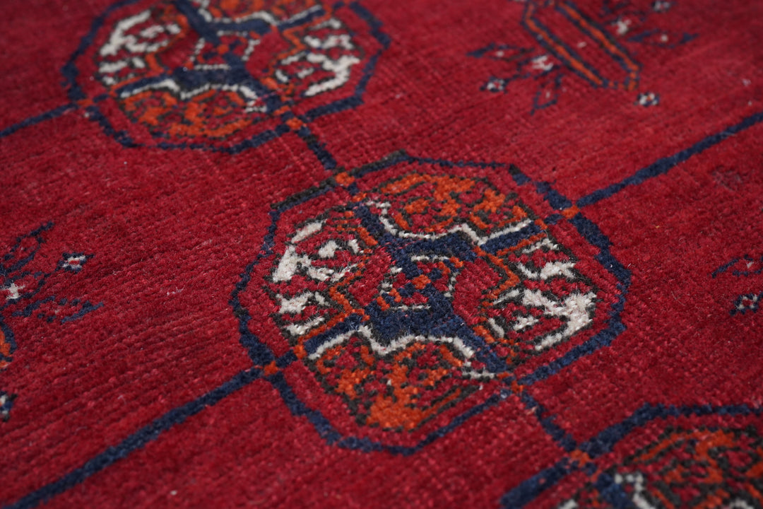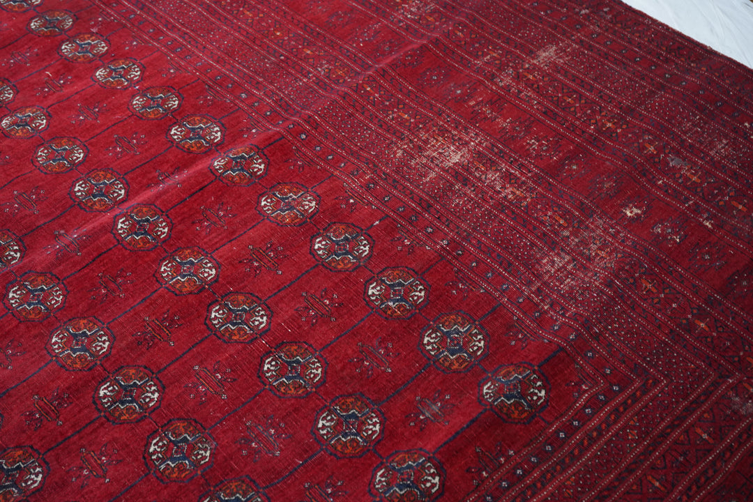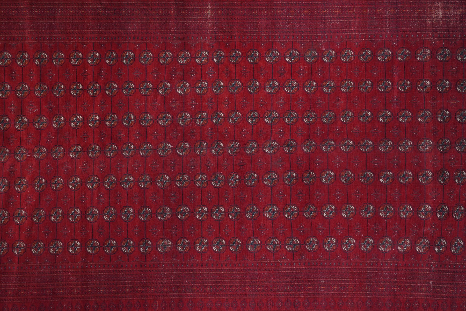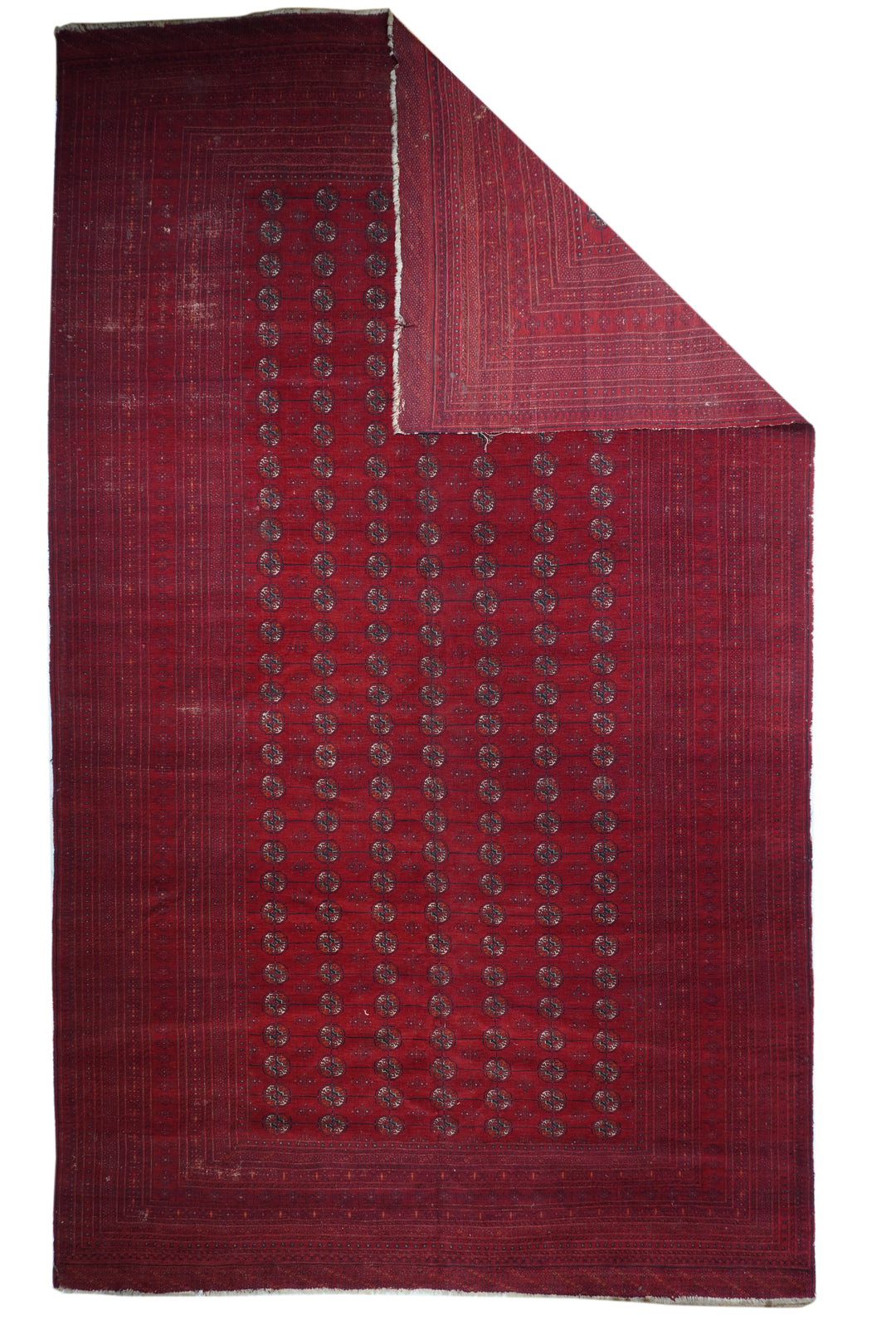 The rugs of the Central Asian/NW Persian Turkic nomadic tribes employing guls (small medallions), wool from their own flocks, primarily red fields, and coarse to very fine knotting, in a wide variety of carpets, door rugs, bags and woven artefacts. Also flat-weaves with weft-float patterns and wool felts. Generally all-wool, with cotton accents. Medium to extremely pricey, depending on type, tribe and age.