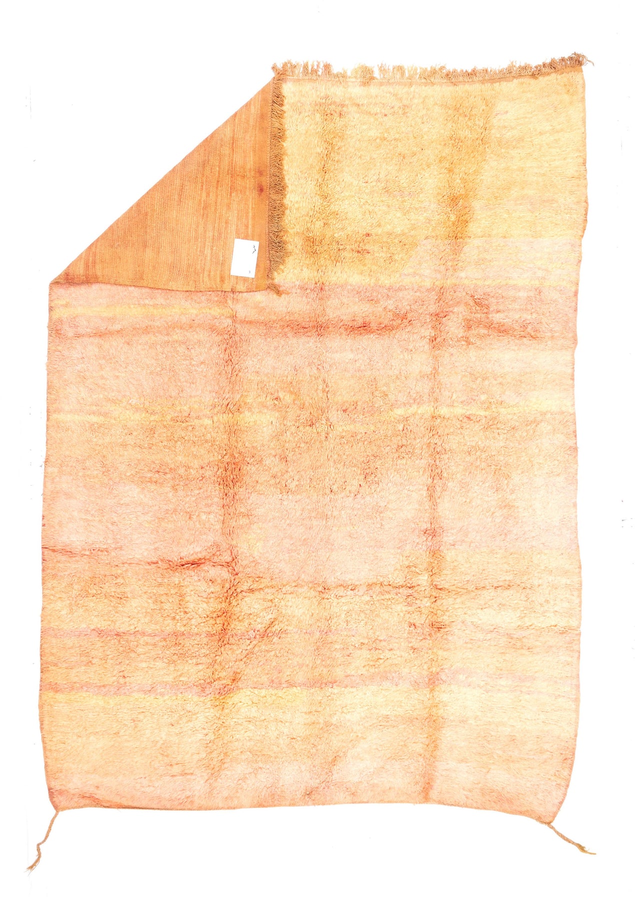 Comprising both the nomadic Berber rugs of the Atlas Mountains, with very thick piles, coarse knotting and limited palettes, and the more colorful, coarse to moderate rugs woven around Rabat, often with Anatolian patterns. Generic type also includes mixed technique rustic pieces. Long rugs, also runners and scatters.