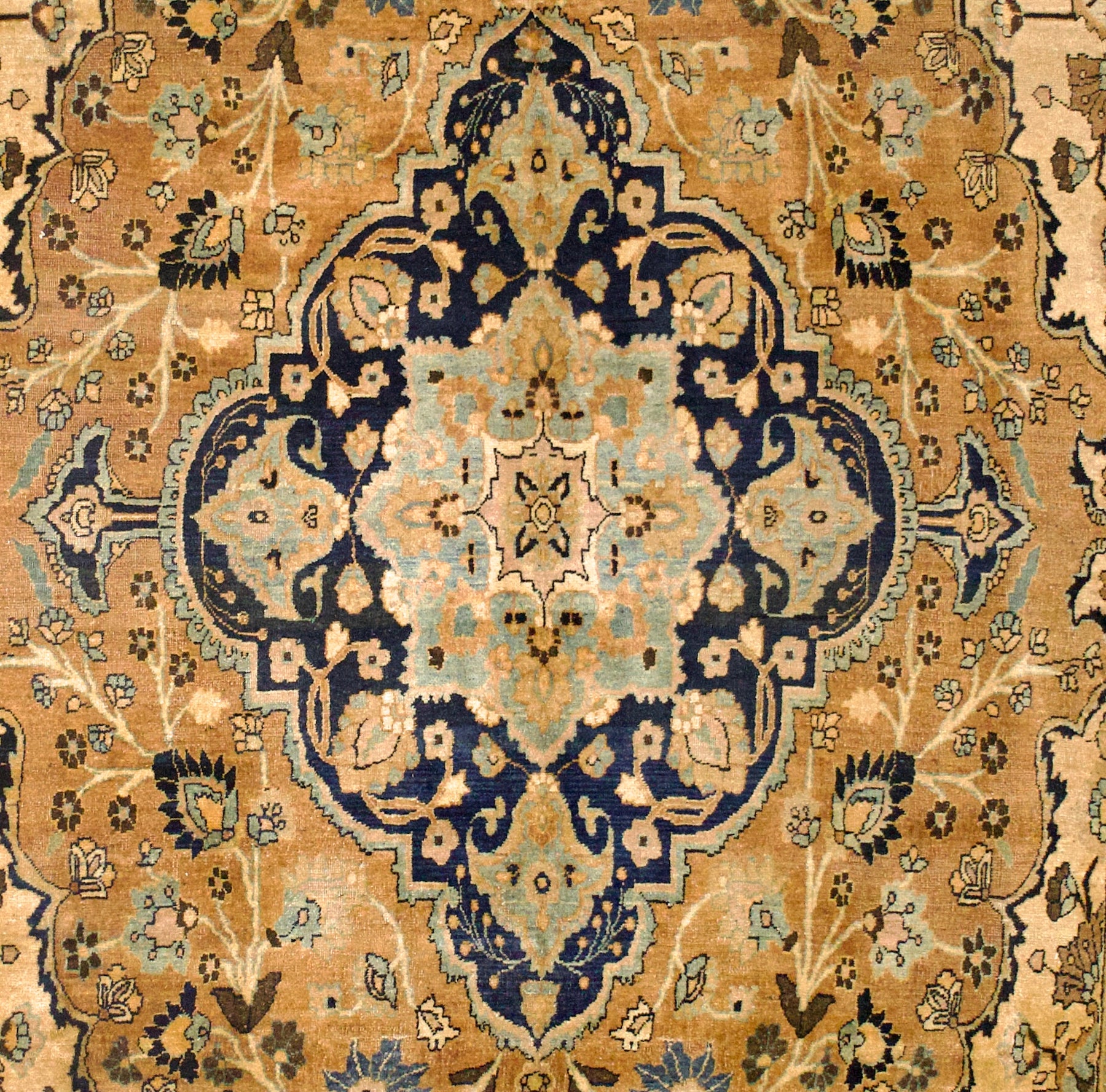 Seat of Khurassan Province and major religious centre. Medallion and overall pattern carpets, curvilinear drawing. Both Persian and Turkish knot types are used. Emogli and Saber were the two most famous master weavers in the 20th century. Medium to very fine weaves. Mostly room sized carpets, but also scatters and runners (kenares), prayer rugs only on demand.