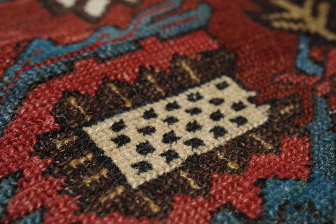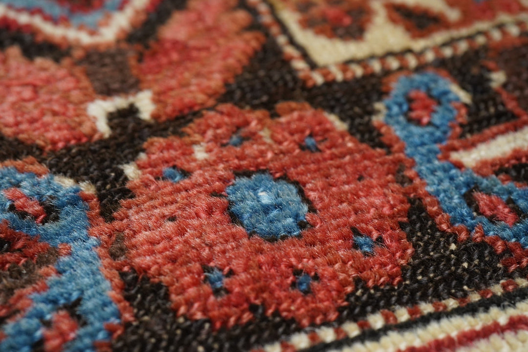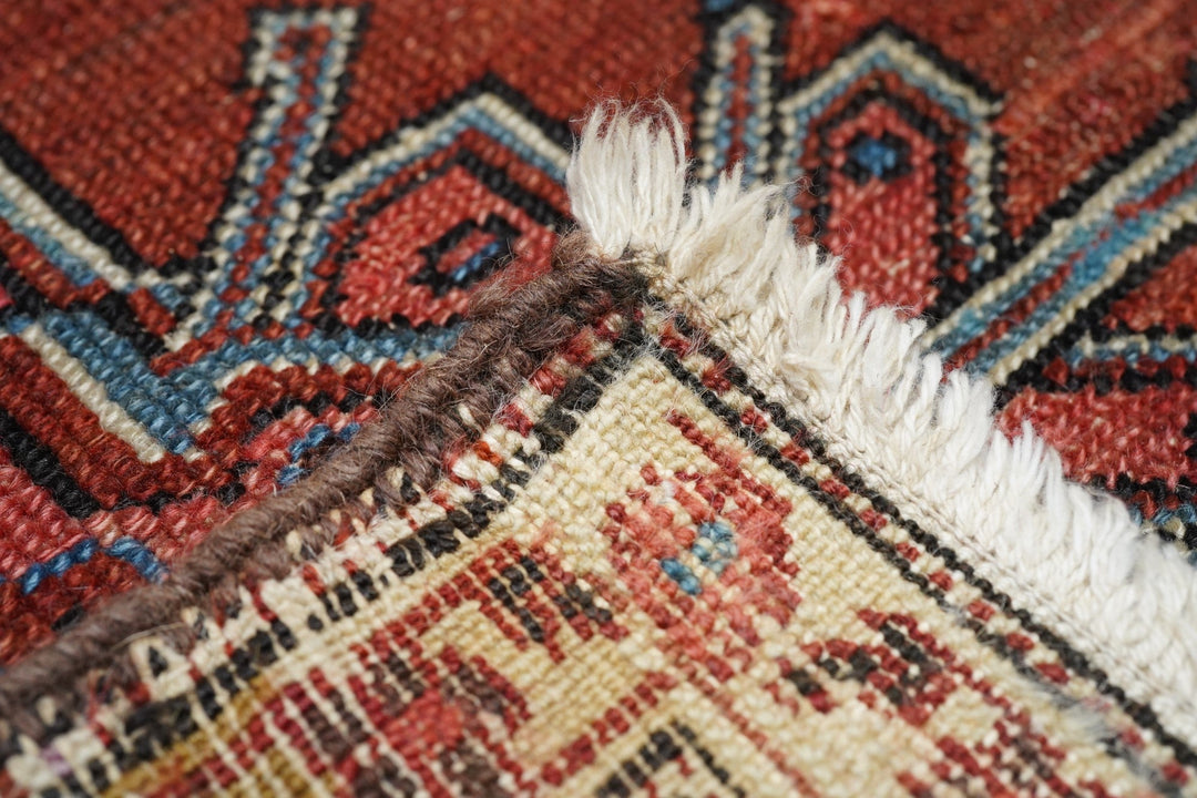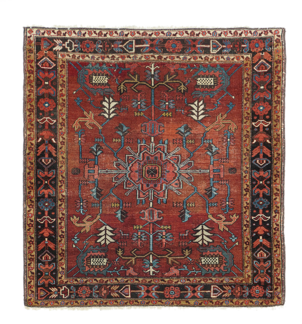 A higher grade of Heriz carpets, usually in medallion designs, with crisp natural dyes, and primarily woven between 1900 and 1930. Red field, navy border is the most popular combination. Semi-geometric.No town of ‘Serapi’. Robustly woven on cotton, with Turkish knots. Moderate weave. Expensive.